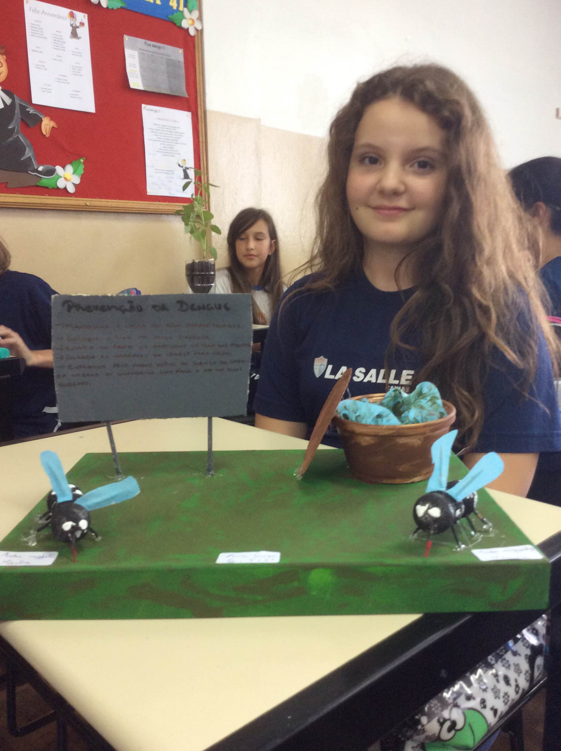 Foi assinado, no último dia 19, o Pacto da Educação Gaúcha contra o Aedes aegypti. O acordo foi firmado entre diversas instituições do Rio Grande do Sul e tem como objetivo mobilizar escolas públicas e privadas, a partir deste mês, para o combate ao mosquito transmissor da dengue, do zika vírus e da febre chikungunya. Uma das primeiras atividades realizadas aqui no La Salle Caxias partiu da turma 61, no componente de matemática. Associando pesquisa, criatividade e conhecimentos em geometria espacial, os alunos procuraram e eliminaram possíveis focos do mosquito em suas residências e arredores, elaborando materiais para conscientizar amigos e vizinhos para o problema. A aluna Marina Costa, por exemplo, criou um panfleto de alerta e distribuiu 100 cópias em sua comunidade. Parabenizamos estes verdadeiros patrulheiros ambientais pelo excelente trabalho!