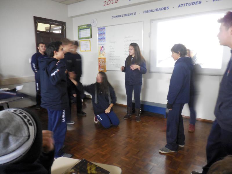 O RPG, Role-Playing Game, é um jogo de interpretação de papéis em que os jogadores criam personagens, constroem histórias e vivenciam aventuras. O estilo existe desde meados da década de 70, chegando ao Brasil no início dos anos 90 e sendo utilizado no ambiente escolar apenas no século XXI. Aqui no La Salle Caxias, a professora Luciana, de Língua Portuguesa, trouxe o jogo para as turmas de 8° e 9° ano do Ensino Fundamental buscando incentivar a produção escrita e oral dos alunos. Um castelo medieval foi definido como cenário da história e, através de um sorteio, cada estudante recebeu um papel a ser interpretado e elaborado. Escolhidas as características físicas, sociais e psicológicas dos personagens, as turmas reuniram-se e, após orientação inicial da professora, encenaram uma grande história improvisada, colaborativa e, principalmente, cooperativa. Ao final, os alunos transcreveram os acontecimentos da aventura, produzindo individualmente um novo final para ela.