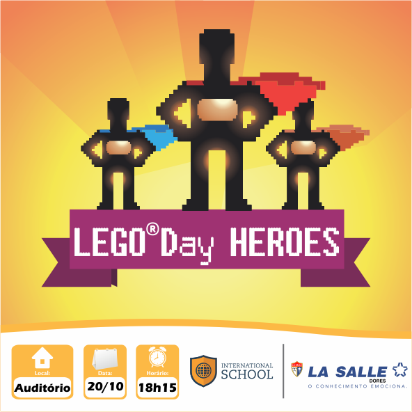O Colégio La Salle Dores convida os alunos de 1º, 2º e 3º Anos do Ensino Fundamental para viverem aventuras emocionantes no “LEGO® DAY Heroes”, evento promovido pelo Programa Bilíngue. O evento acontecerá no dia 20 de outubro, quinta-feira, às 18h15min, no Auditório do Colégio.