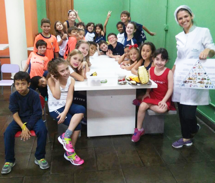 Nesta semana, a turma 132, do 3º Ano do Ensino Fundamental do Colégio La Salle Dores, participou de uma divertida conversa com a Nutricionista do Colégio, Karina Costa.