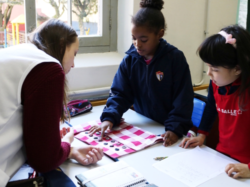 Com intuito de explorar dinâmicas de aprendizagem diferenciadas, os estudantes da turma 133 do 3º Ano do Ensino Fundamental do Colégio La Salle Dores, orientados pela professora Franciele Herbert, confeccionaram uma "tabuada de botões".