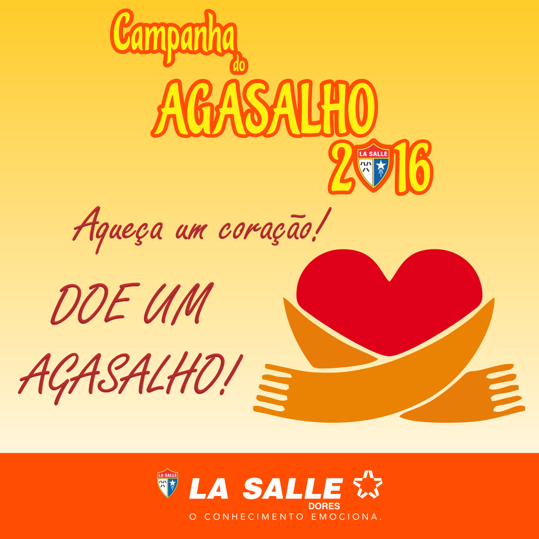 Com o lema, “O inverno está aí. Não dá para ser frio nesta hora”, o Colégio La Salle Dores lança a Campanha do Agasalho 2016. Comprometidos com a ideia de “agasalhar” aquelas pessoas que não possuem condições para comprar roupas e calçados, concebemos nossa campanha deste ano, organizando-a da seguinte forma:
