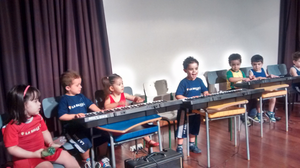 Alunos da Educação Infantil do Lassalinho All Time mostraram seu talento na apresentação de música promovida pelo professor Daniel Vargas. O espetáculo aconteceu na última semana no auditório da escola. Com muita afinação e harmonia, os alunos cantaram e tocaram canções ensaiadas durante as aulas de música.