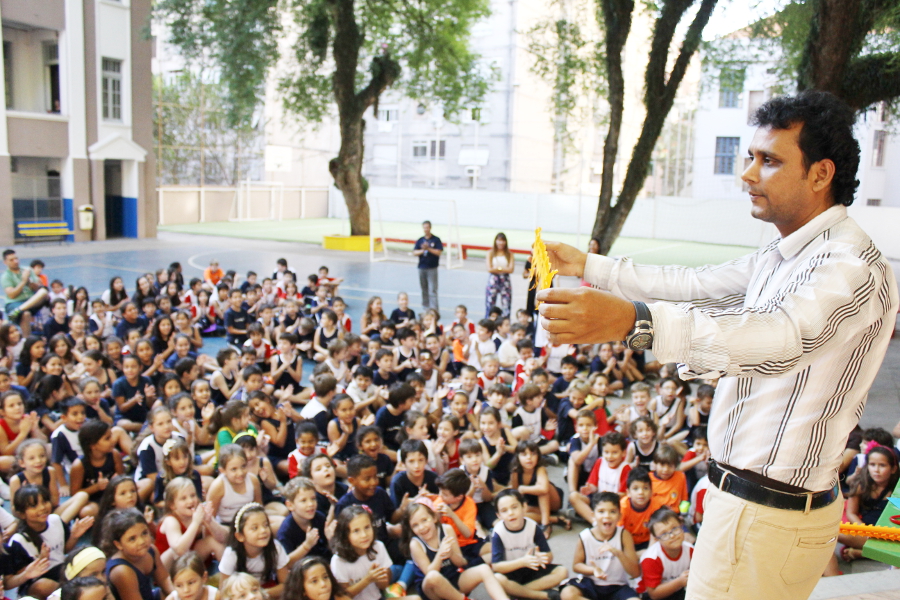 O Colégio La Salle Dores recebeu ontem, 19, a visita do Sr. D. K. Rai, cidadão cujo país de origem é a Índia, que apresentou para alunos de 1º a 6º Ano do Ensino Fundamental a arte indiana em papéis de seda.