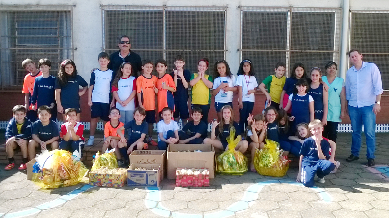 Na última quarta-feira, 08, foram sorteados 15 estudantes das turmas 132 e 133 do 3º Ano do Ensino Fundamental do Colégio La Salle Dores para realizarem a entrega de 211 ninhos de Páscoa, confeccionados para crianças em situação de vulnerabilidade social da Obra Social Santa Luzia, entidade atendida pelo Colégio. A atividade foi a culminância do projeto “Páscoa Solidária”, desenvolvido no Colégio durante a Semana Santa.
