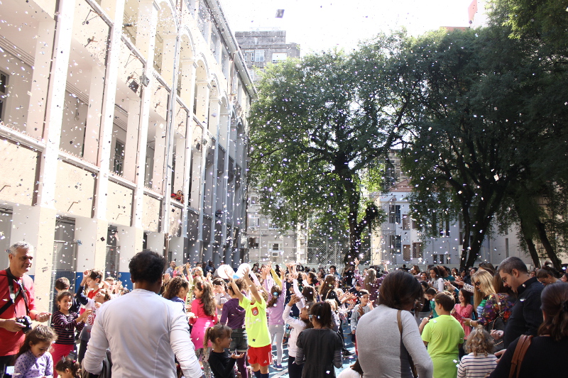 No final das atividades em comemoração ao Dia das Mães, todos foram convidados a cantar com o professor Duda a música “Amor Maior”, sob uma chuva de prata que encerrou a confraternização.