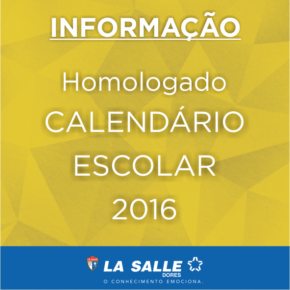 A Direção de Missão da Rede La Salle homologou, através do Ofício DM Nº 37/2015, o Calendário Escolar Letivo de 2016 do Colégio La Salle Dores.