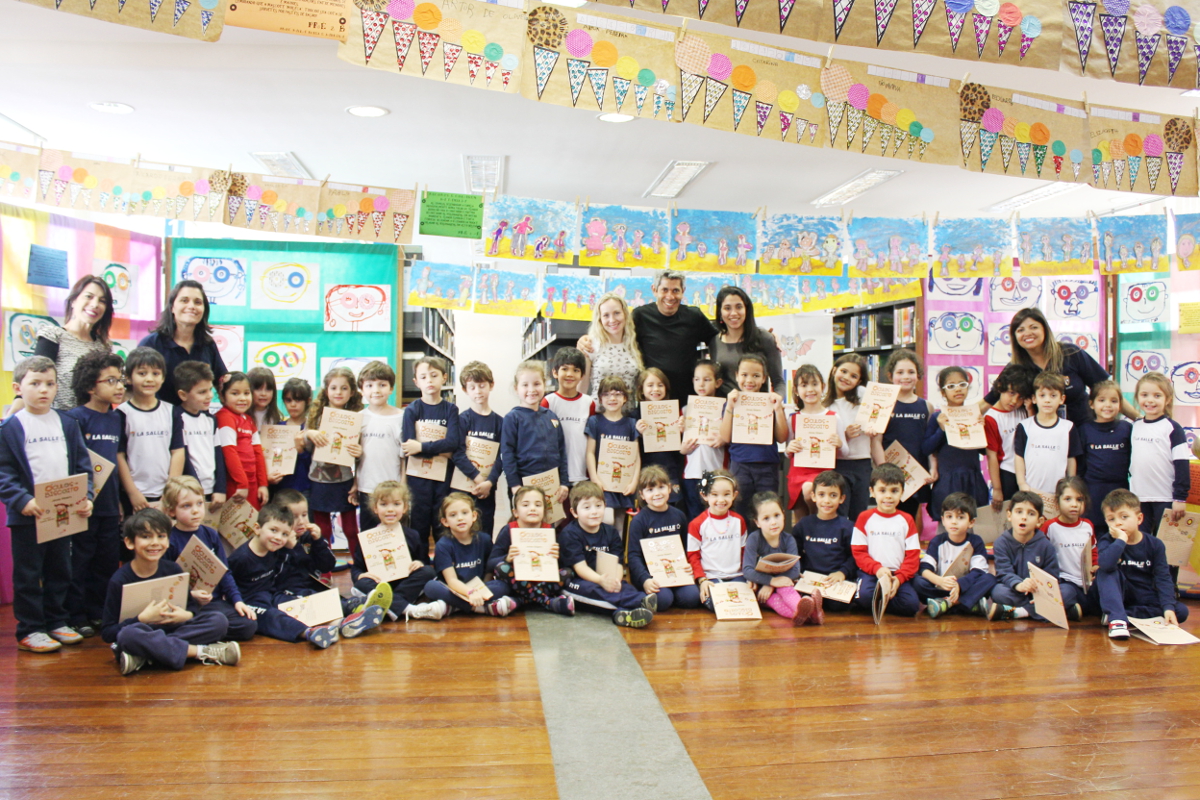 Todo o material produzido durante o projeto resultou em uma belíssima exposição de arte na Biblioteca do Colégio. Na abertura da exposição, os pequenos receberam a visita ilustre do autor da obra, o escritor Jonas Ribeiro.