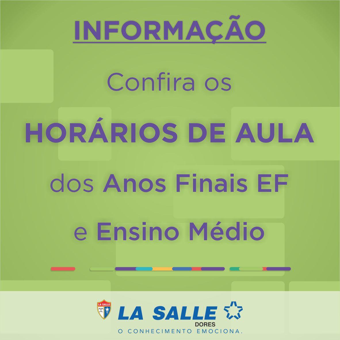 Informamos que já estão disponíveis os Horários de Aula para os Anos Finais EF e Ensino Médio.