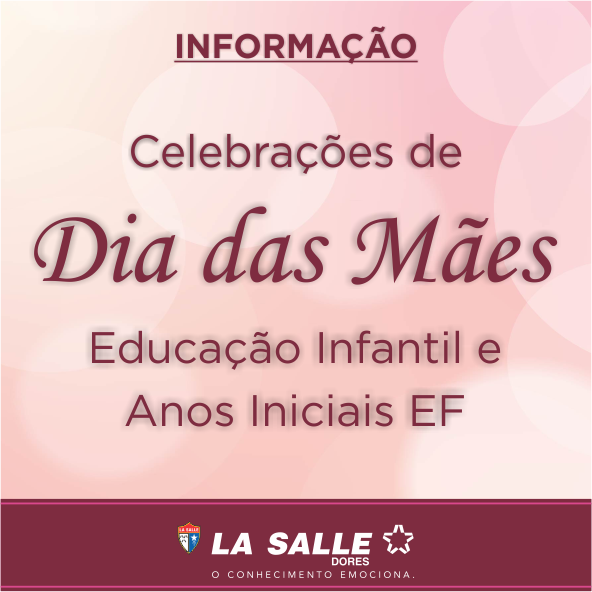 O Colégio La Salle Dores convida todos para a Celebração de Dia das Mães com as turmas da Educação Infantil e dos Anos Iniciais do Ensino Fundamental.