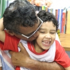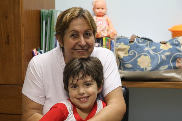 “Essa é uma história triste e boa ao mesmo tempo. A minha filha é mãe solteira, no dia do parto eu que fui e ela quase teve eclâmpsia. O Matheus por pouco teve que ficar na UTI Neonatal, por conta do coração dele. Foi uma luta muito grande, mas falei que ficaria com ela o tempo todo, como estou até hoje, quase 5 anos depois. O nome do meu neto significa “dom de Deus”, então é uma alegria muito grande em nossas vidas. O Matheus é uma criança levada, mas carinhosa, que chega perto de mim e fala: ‘Vovozinha, eu quero ficar contigo, quero você’. Traz todo dia flor para a professora. Nós somos um grude. Ajudo no que é possível, trabalho, sou massoterapeuta. Fico orando a Deus para minha filha conseguir se colocar melhor, fazendo com que eu possa trabalhar um pouco menos e curtir mais os dois”.
