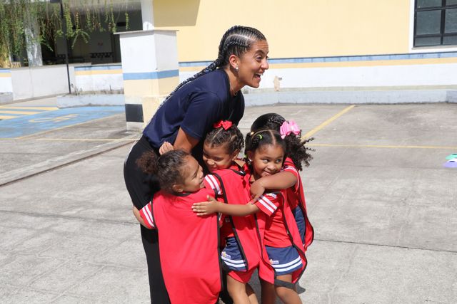 Fernanda, ou tia Fernanda, como carinhosamente é chamada pelos alunos, expressou, além da emoção, muita alegria ao ver a consolidação do seu projeto na Escola La Salle. Em entrevista a este site, ela ressaltou que chamou a sua atenção o fato de as crianças trazerem como bagagem para este ano as lembranças do que viveram na escola em 2024, quando ocorreu a primeira edição do projeto. “Já sabiam o que era o evento, do que se tratava. Eu realizei com eles atividades ao longo desses meses, e fui explicando: ‘Olha, vamos usar essa música, vamos fazer alongamento, aquecimento, depois vamos fazer as competições’. E fui falando sobre competir, sobre os cuidados. E na cabecinha deles foi fazendo sentido até por conta do que já tinham experimentado”, pontuou.