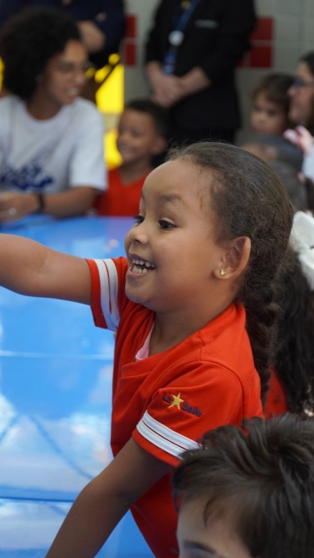 Irmão Armin afirmou para as crianças que estava muito feliz por estar na presença delas. Para transmitir essa mensagem, usou gestos e empregou palavras em inglês que foram repetidas pelos pequenos, em uma demonstração espontânea deles da sede pelo aprendizado. Já as crianças demonstraram a acolhida pelas visitas com abraços, sorrisos e presentes. O Superior Geral ganhou um cartão personalizado e um Lassalinho. Além da versão em boneco, o mascote da escola também pôde ser visto naquela tarde em tamanho real, acompanhando a comitiva, para a alegria dos alunos.