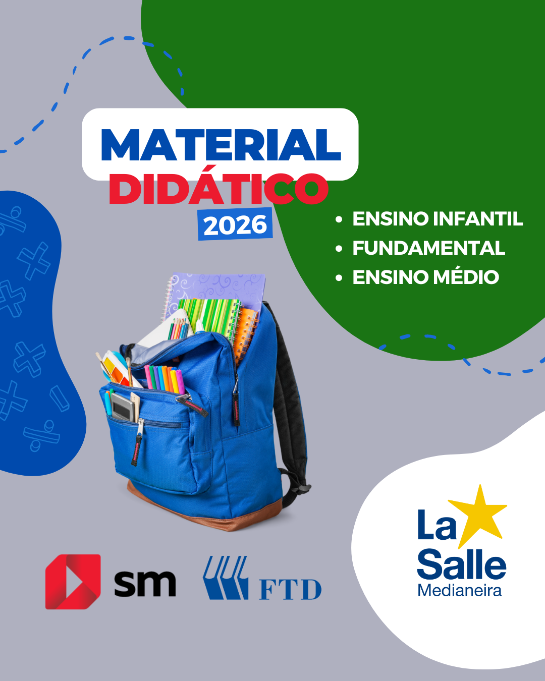 Esta é a relação dos Materiais Didáticos para o ano letivo de 2026. Nossa parceria é com a editora SM Educação