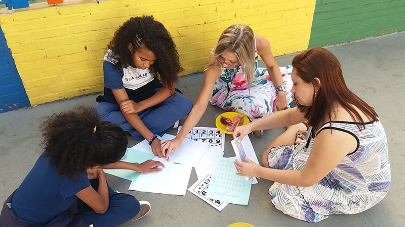 Os alunos dos 7°anos juntamente com a mediação do SOE, Pastoral e AEE, estão trabalhando com os alunos o circuito de inclusão, que irão apresentar para as demais turmas da escola, que contempla as seguintes questões: Deficiência visual, autismo, braile, deficiência física e entre outras.