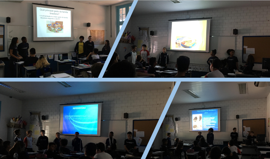 Os alunos dos 7°anos apresentaram ao grande grupo os principais gastos das famílias Brasileiras e relacionaram com o salário mínimo. Foi uma bela reflexão.