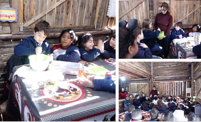 A turma 212 com o seu projeto " Eu, o outro e o mundo" aprenderam a grande quantidade de açúcar e sal que os alimentos tem e o quanto isso prejudica a saúde. Diante disso a turma preparou um delicioso bolo que não tem açúcar e nem farinha. Nesta culinária os alunos aprenderam matemática com as medidas dos ingredientes e português redigindo a receita.