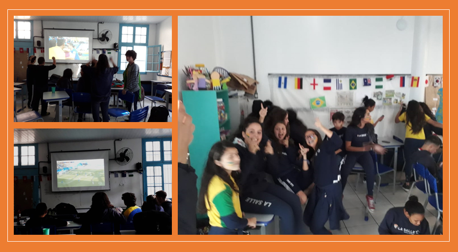 Os alunos da escola assistiram o jogo do Brasil x Costa Rica.