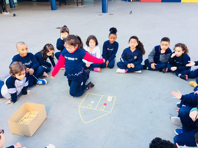 Os alunos da turma 112 do 1°ano, aprenderam o conceito da dezena através de uma História “ A casinha da vizinha” de Sônia Amaral. Após foram distribuídos em grupos no pátio da escola, para aplicar o que aprenderam com a história contada pela professora.