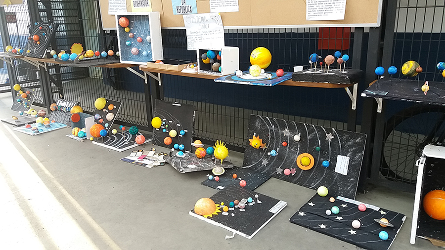 Maquete construída pelos alunos dos 3°anos, após seus estudos e descobertas sobre os Planetas, conceito explorado na área de conhecimento da Ciências da Natureza.