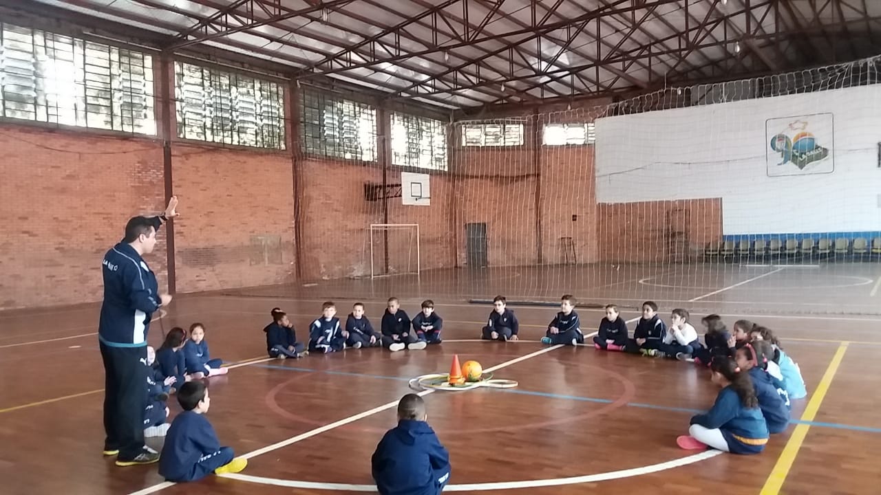 É com muita alegria que os alunos dos 1°anos participam da aula de educação física do Professor Pablo.