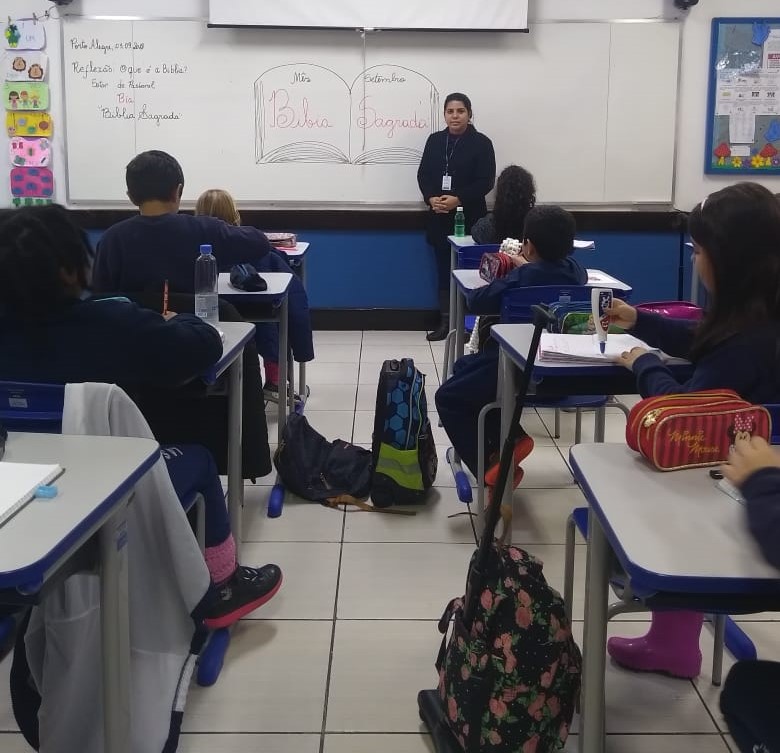 A Pastoral passou nas salas de aula para uma formação com os nossos alunos dos anos iniciais sobre o mês da Bíblia.