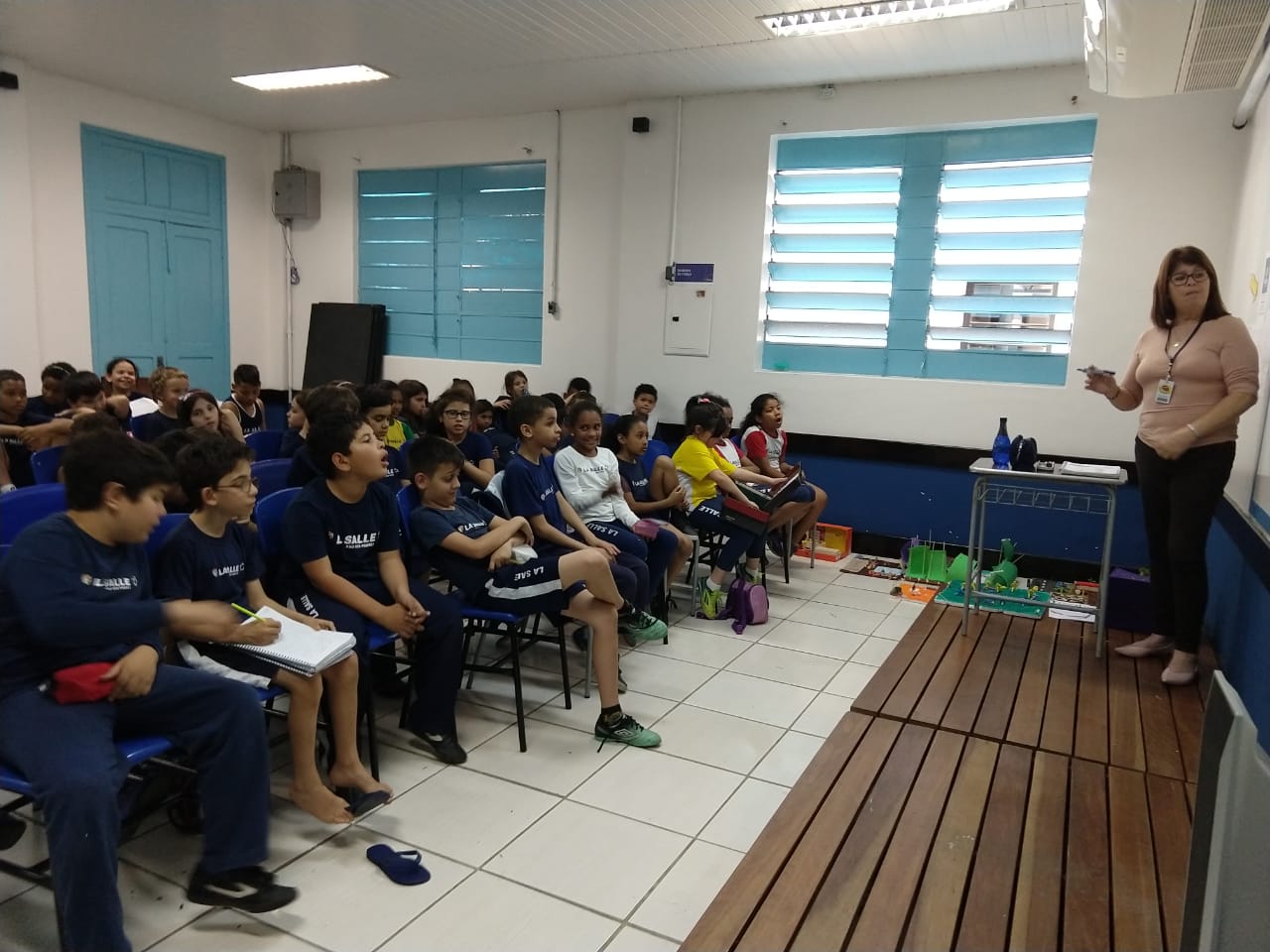 Os alunos dos 3°anos trabalharam com a professora Niúra os estados físicos da água, como a água se apresenta nos estados sólido, líquido e gasoso. Foi falado sobre os átomos de hidrogênio e oxigênio que formam a molécula da água. Os alunos exemplificaram cada processo para melhor entendimento e demonstraram o conhecimento adquirido, através de uma aula prática.