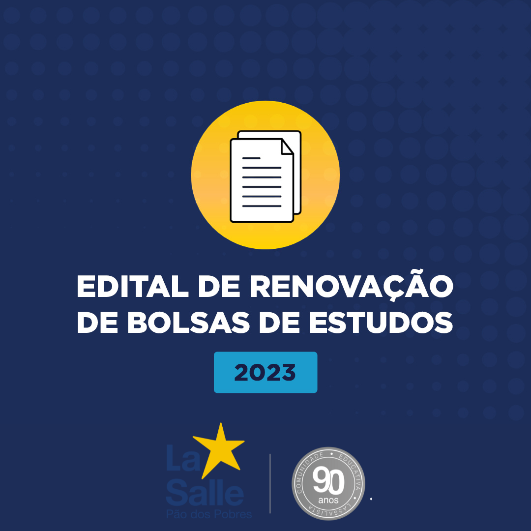 A Escola La Salle Pão dos Pobres, por meio da Comissão Interna de Concessão de Bolsas Estudos, torna público o Edital de RENOVAÇÃO de Bolsas de Estudos na Educação Básica para o ano letivo de 2023.