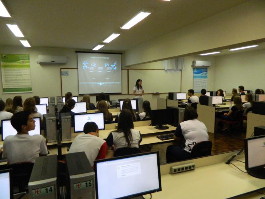 As turmas 221 e 222 realizaram visita à UNOESC, nos laboratórios de anatomia, zoologia, botânica, microbiologia, informática e biblioteca da universidade.