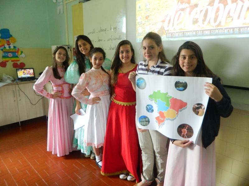 correspondentes às cinco regiões do Brasil. Cada grupo fez uma pesquisa sobre