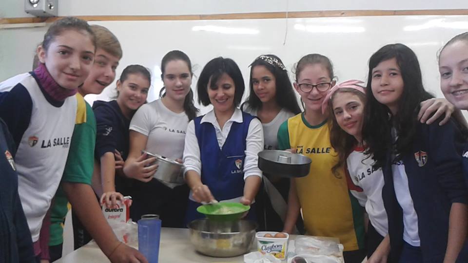 alunos prepararam a receita do bolo que foi assado na cozinha da escola. E os cálculos