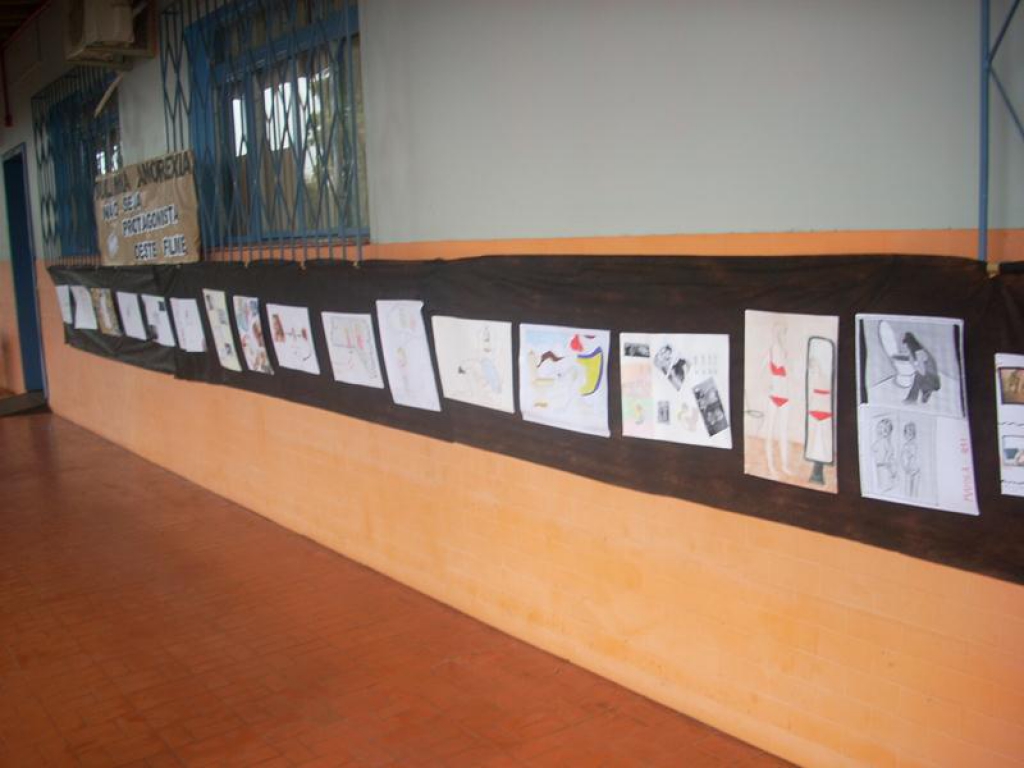 As turmas 181 e 182 desenvolveram trabalhos sobre anorexia e bulimia com o intuito de identificar informações sobre estes transtornos alimentares. As atividades foram realizadas na primeira quinzena do mês de junho. Depois de discussões com os alunos sobre o tema, cada um teve que representar a sua visão sobre o assunto em uma tela, as quais foram expostas na escola, com o intuito de repassar as informações as outras turmas. O tema da exposição foi - NÃO SEJA PROTOGONISTA DESTE FILME.