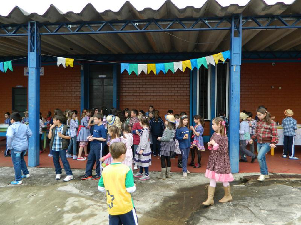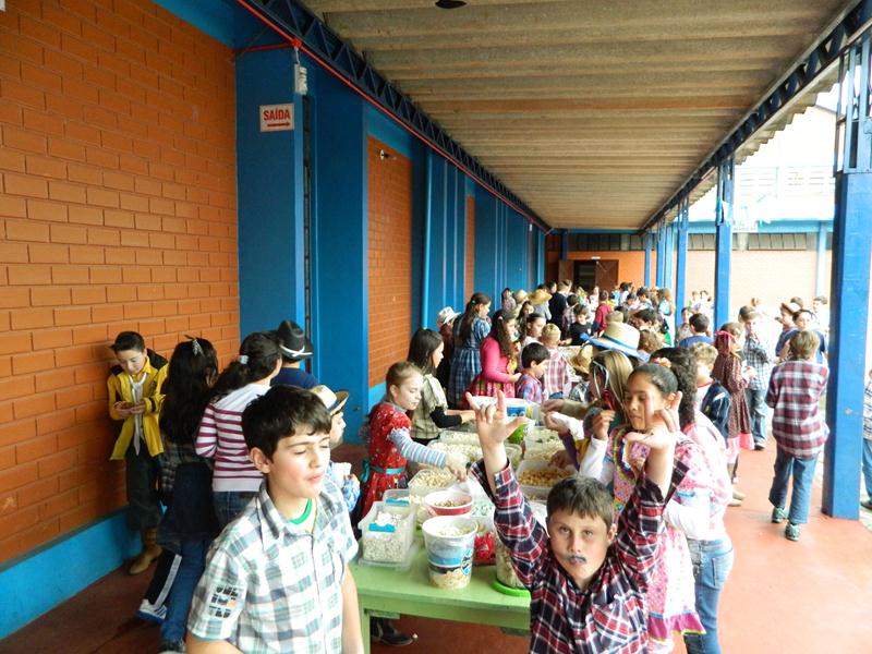 Os alunos e funcionários do turno vespertino comemoraram a data vestindo traje típico e deliciando-se com os pratos juninos.