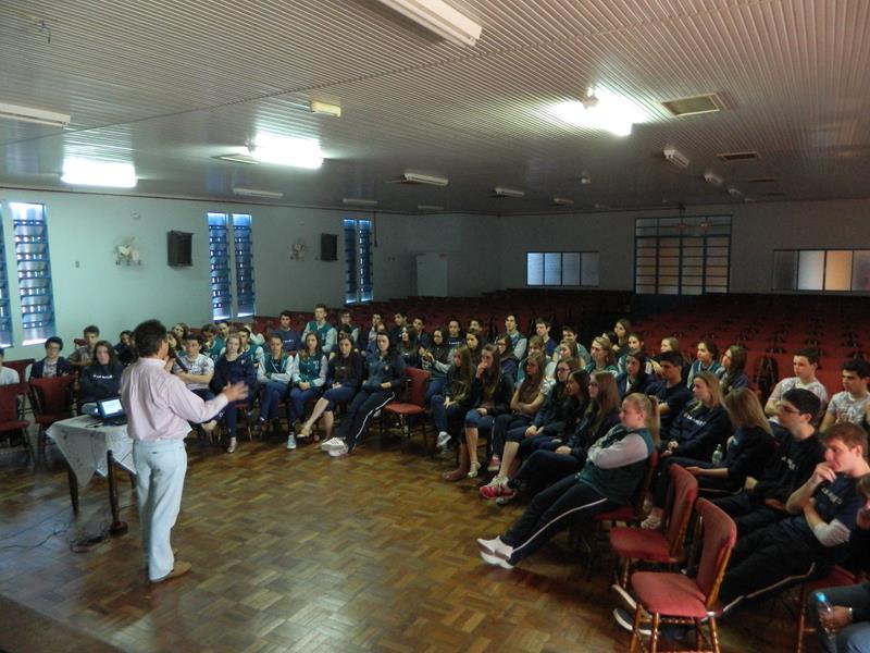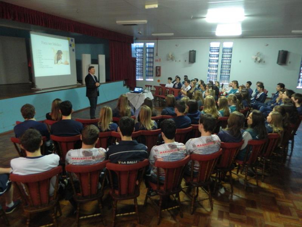 Aconteceu nesta terça-feira, no Salão de Atos do Colégio La Salle Peperi, o encontro dos 70 estudantes formandos do Terceirão 2014 com profissionais de diferentes áreas, no Seminário das Profissões.Os diálogos foram mediados pelos palestrantes Aline Hübner e Geovani Develati (Medicina), Cleonor Mahl (Eng. Civil), Raquel Piletti (Eng. Química), Jaqueline Geller (Médicina Veterinária) e Nédio Lima (Direito), que falaram sobre sua área profissional, desafios, possibilidades, experiências (com fotos, slides, vídeos, fatos) e projeções futuras.Agradecemos aos profissionais pela colaboração com a proposta educativa do Colégio La Salle Peperi.