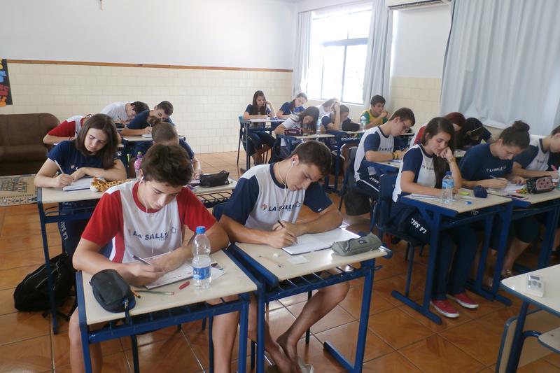 Em Língua Portuguesa, a Professora Arcenia trabalhou produção textual/redação baseada em proposta do ENEM, a fim de intensificar o estudo e a construção da competência da escrita.