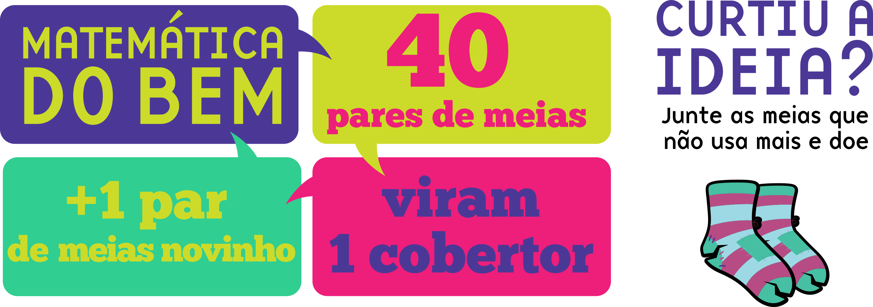 O projeto Meias do Bem recolhe meias velhas, sem par, até mesmo furadas e de qualquer marca. As meias são recicladas e transformadas em cobertores que são doados com mais um par de meias novinho. Desde o inicio do projeto já foram doados mais de 10 mil cobertores e pares de meias novas.