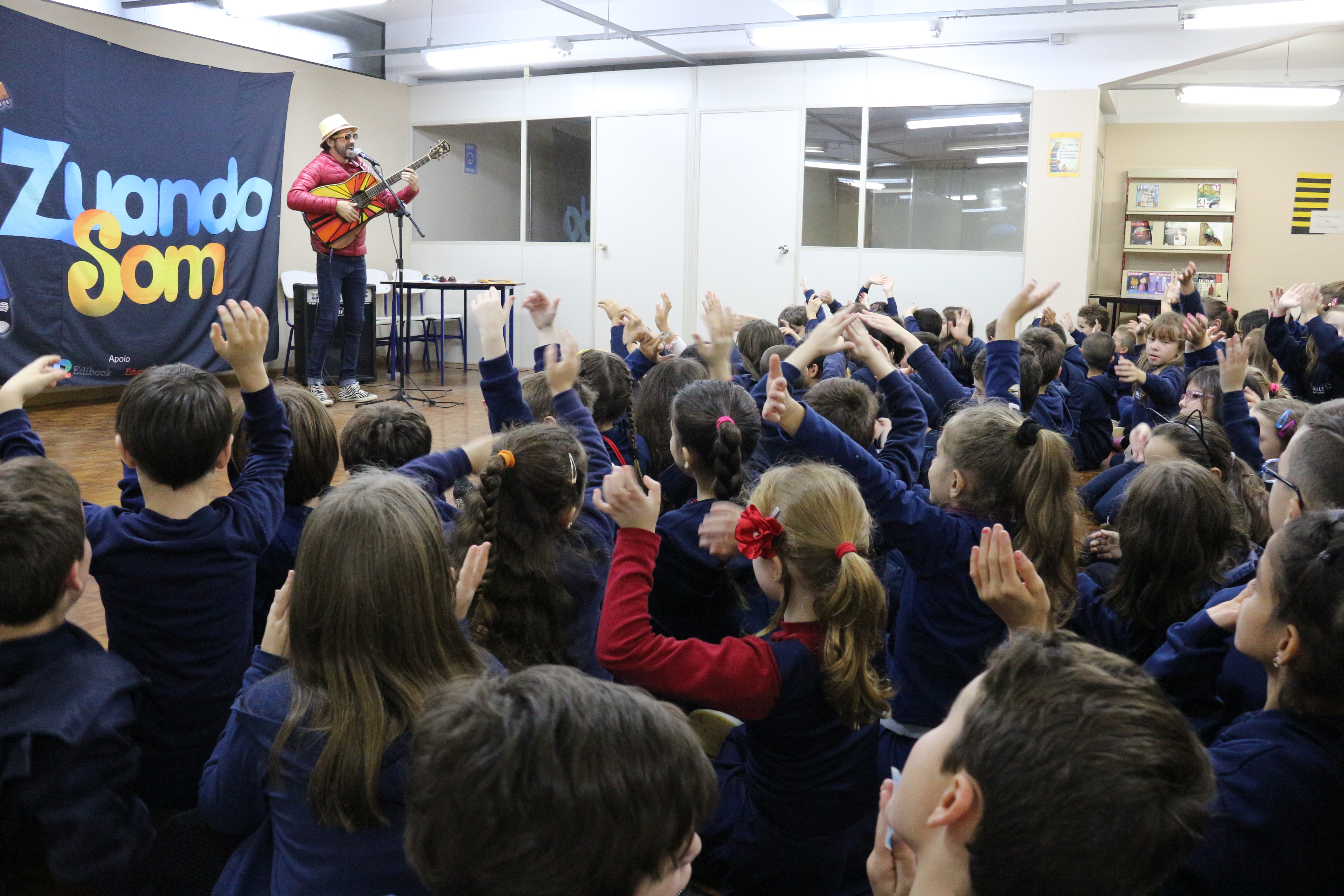 Ontem (6/6), os alunos 2° ano do Ensino Fundamental se divertiram com a presença do musico Rodrigo Prates do Zuando Som. A atividade realizada pelo musico é um Projeto de Literatura e Música, os shows apresentam canções autorais que valorizam a inteligência da criança através de letras curiosas que revelam o cotidiano infantil.