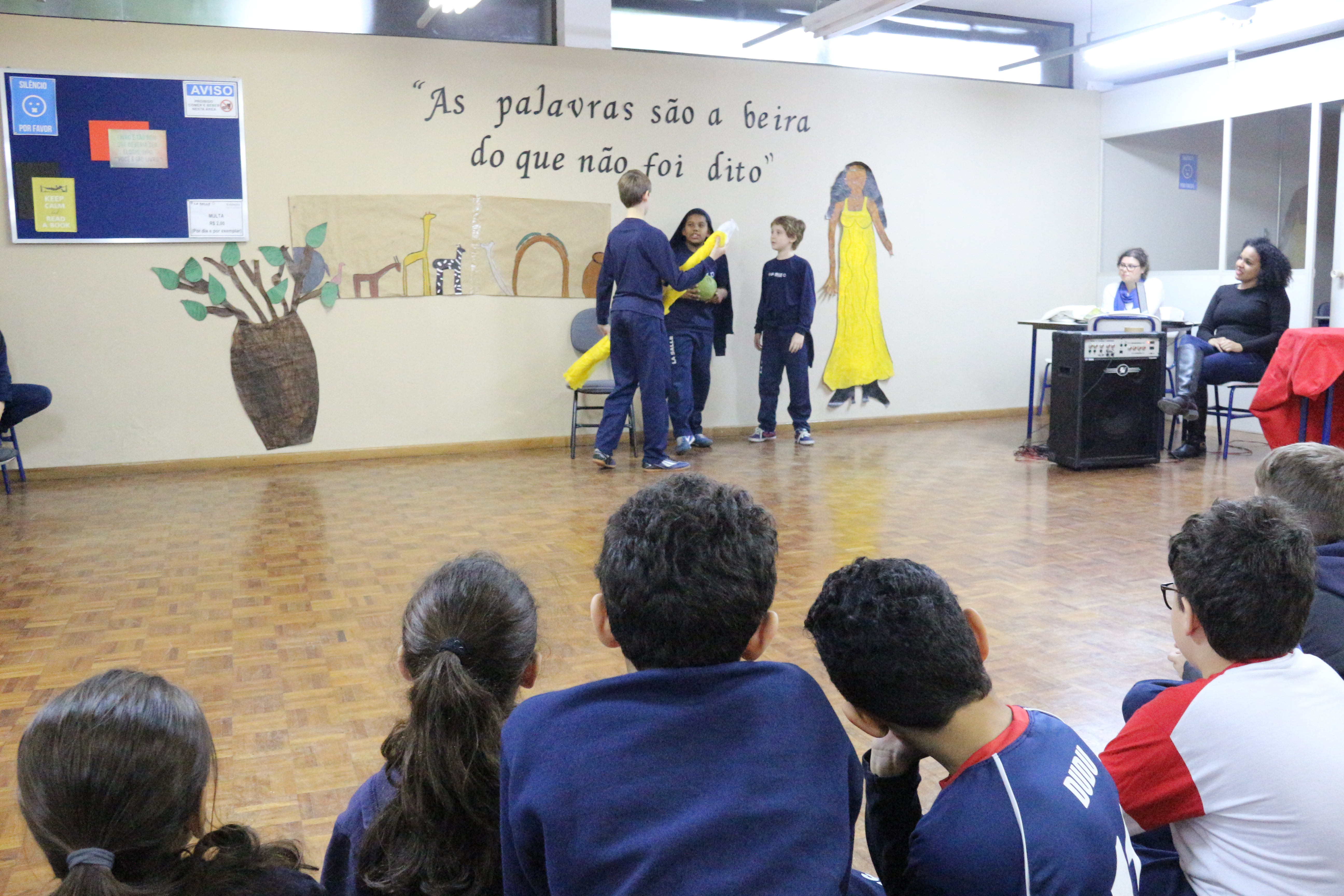 As turmas do 3º Ano do T.I puderam assistir o "Sarau - Histórias extraordinárias de um lugar distante" produzido e encenado pelos alunos do 5º Ano. O Sarau foi sobre os livros Obax, do escritor André Neves; Os viantes e o Sonhadores, da autora Lenice Gomes e Pretinho, meu boneco querido da escritora Maria Cristina Furtado.