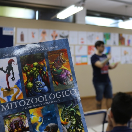 Hoje (4/09), as turmas do 6º ano do Ensino Fundamental, do Colégio La Salle Santo Antônio, receberam uma visita especial do autor Carlos Augusto de Brum para um bate papo sobre o livro Mitozoológico. A ideia do livro é imaginar um zoológico que reuniria animais mitológicos do mundo inteiro. Dividido em continentes o livro é composto por 29 contos e possui ilustrações feitas pelo próprio autor destes seres fantásticos. O livro surgiu da paixão de Cadu pelas lendas mitológicas que durante 3 anos coletou essas histórias em diversas fontes.