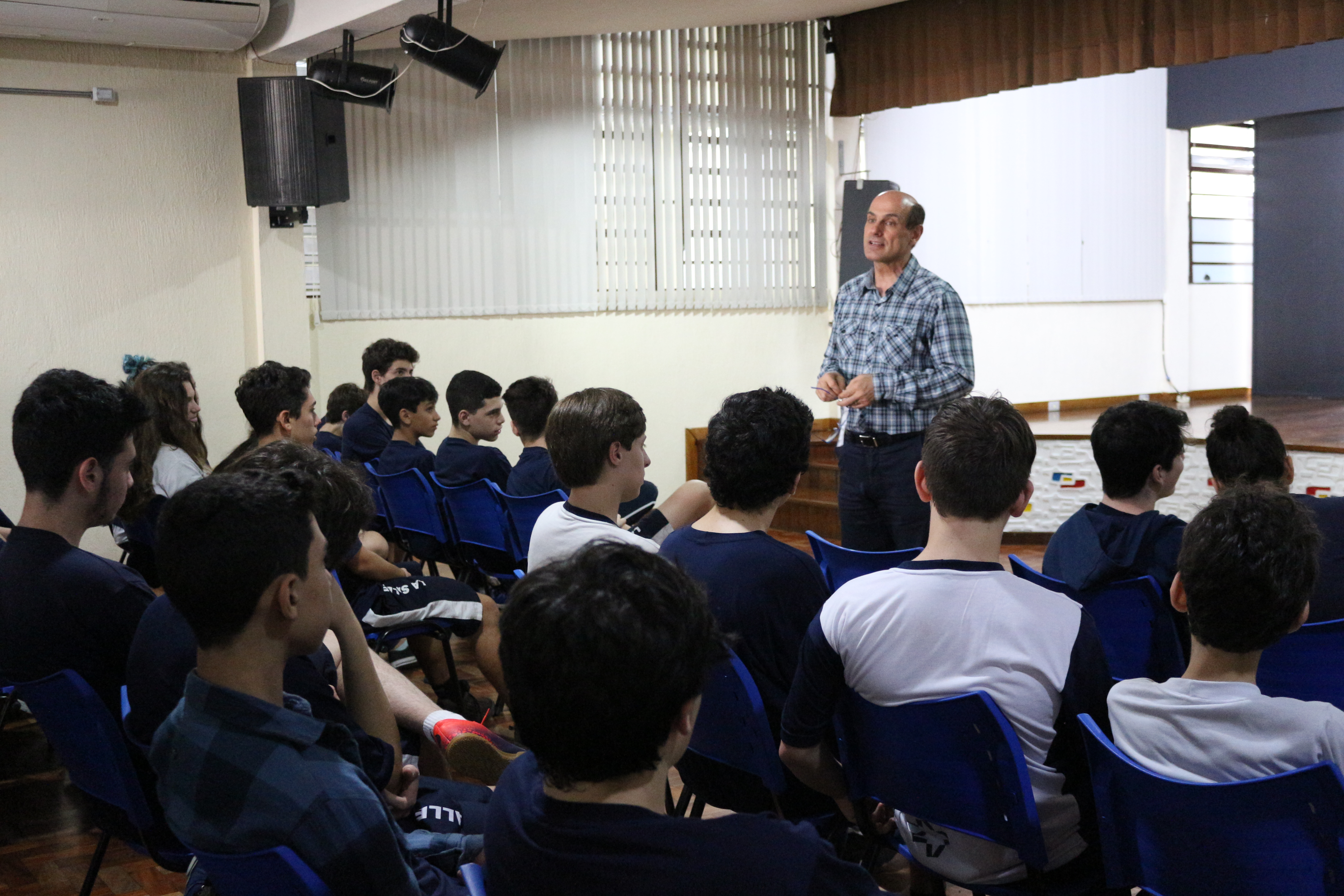 Na manhã de quinta-feira (14/9), os alunos do 8º Ano do Ensino Fundamental do Colégio La Salle Santo Antônio participaram de uma palestra sobre o tema “Adolescência, Desenvolvimento e Sexualidade” com Alberto Mainieri que é hebiatra e professor da Faculdade de Medicina da UFRGS.