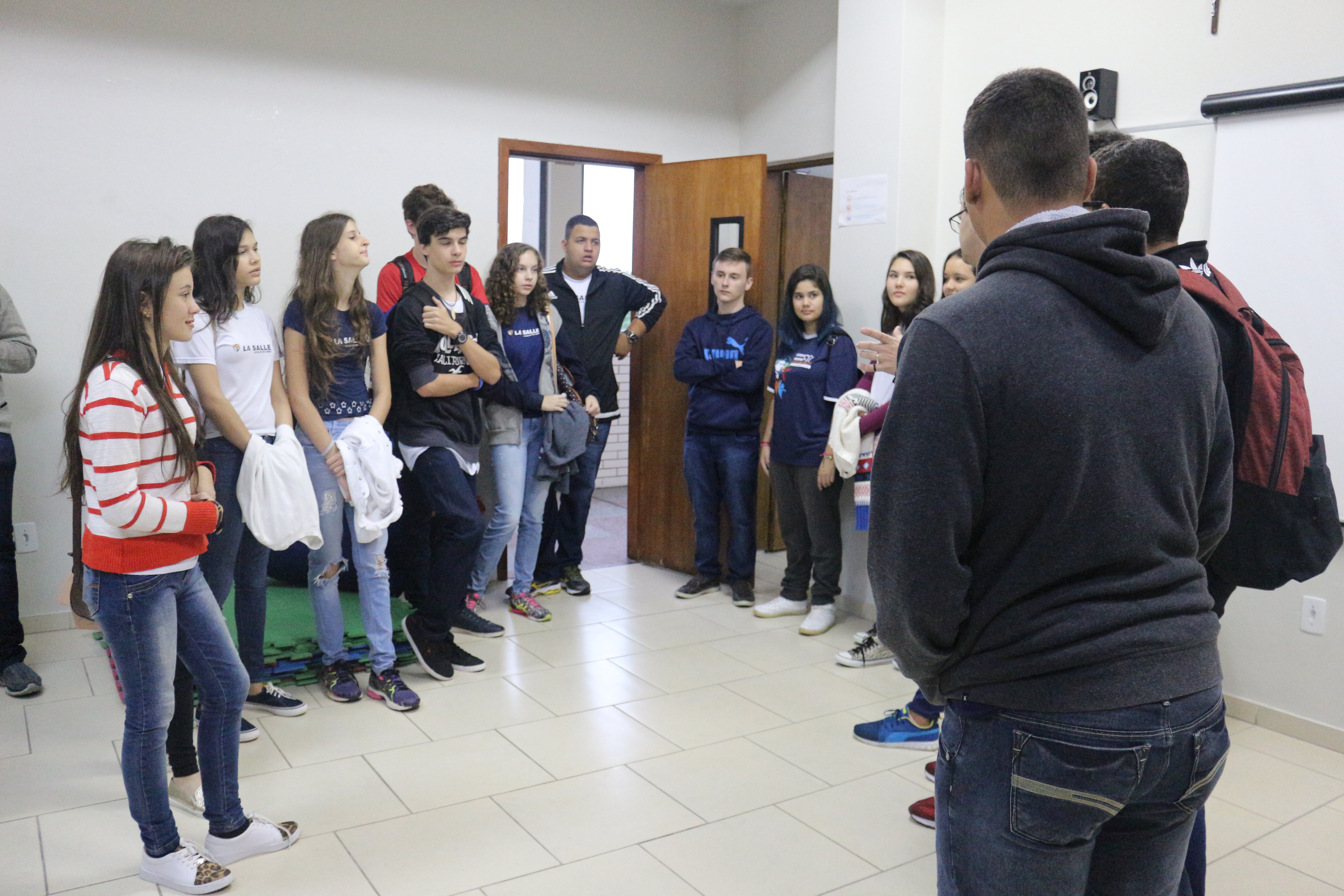 Hoje (11/10), pela manhã, o Colégio recebeu a visita dos estudantes do 9º Ano do Ensino Fundamental do Colégio La Salle Lucas do Rio Verde (MT). O grupo conheceu as dependências antonianas, com o Coordenador de Pastoral Adriano Sauer, e o professor de Educação Física Volnei Júnior. No intervalo os alunos do Lucas do Rio Verde puderam interagir com os estudantes.