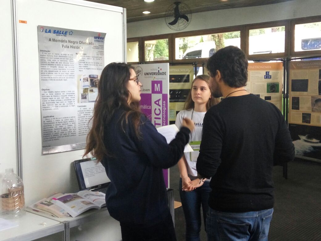 O trabalho “A memória negra ofuscada pela História”, das alunas Selene Camargo e Roberta Ballejo da 3ª série do Ensino Médio, orientado pelo professor Elivelto Machado, ganhou o prêmio destaque UFRGS - Jovem Pesquisador 2017. O troféu será entregue amanhã (19/10), na Cerimônia de Encerramento do XII UFRGS Jovem, no Salão de Atos da Reitoria – Campus Centro, das 10h às 12h.