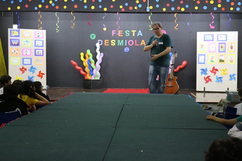 Hoje (1º/11), as turmas de 4º ano do Ensino Fundamental, do Colégio La Salle Santo Antônio, participaram da Festa Desmiolada. A atividade é a culminância do projeto do Livro “Museu Desmiolado”, do autor Alexandre Brito. O encontro com o escritor, que ocorreu no Salão de Atos do colégio, foi marcado por muita alegria e músicas, Alexandre respondeu a muitas perguntas, os alunos puderam conhecer mais sobre o processo de produção e ilustração do livro, o autor tirou fotos e autografou os livros dos estudantes.
