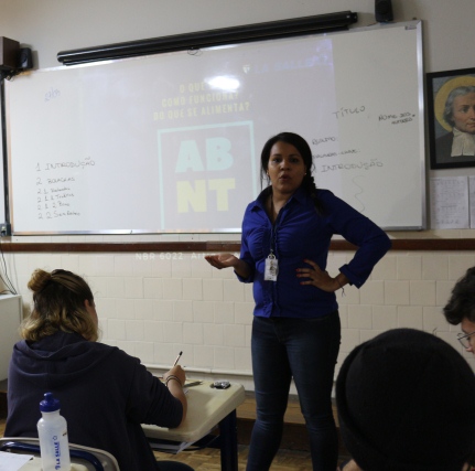Na última semana de março, as turmas de 1ª e 2ª séries do Ensino Médio, do professor Irineu Schütz, participaram de uma oficina para a elaboração de artigos científicos ministrada pela bibliotecária Gislene Rodrigues.