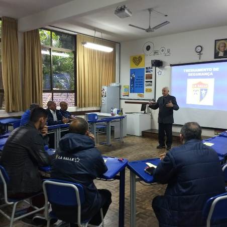 Sábado (19/5), pela manhã, no Colégio La Salle Santo Antônio, a equipe de vigias participou de uma formação para integrar, unir e qualificar ainda mais a equipe.