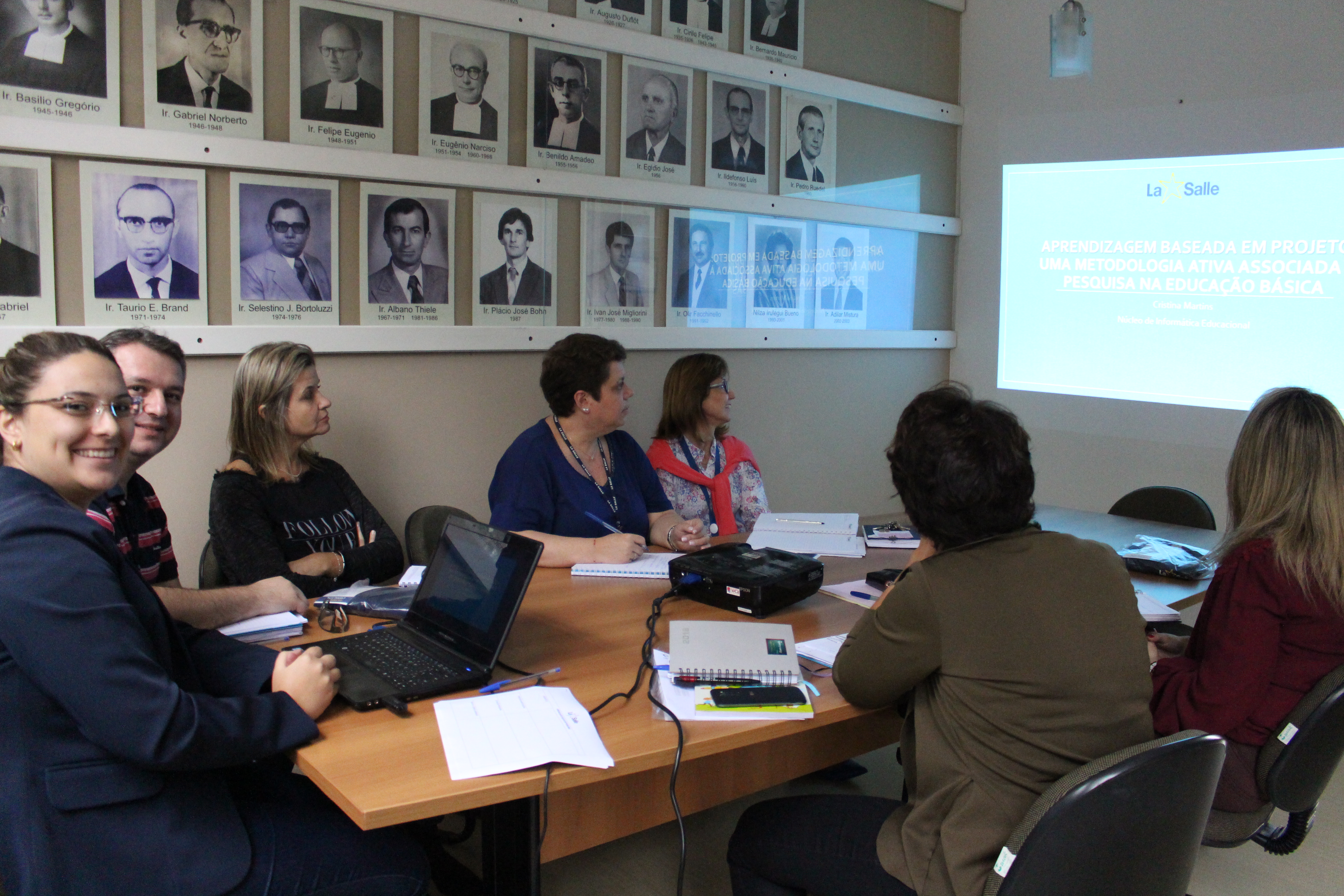 Na última sessão de estudos a colaboradora Cristina Martins, doutoranda em educação, responsável pelo Núcleo de Informática Educacional (NIE) conduziu os estudos com o título: “Aprendizagem baseada em projetos: uma metodologia ativa associada à pesquisa na educação básica”.