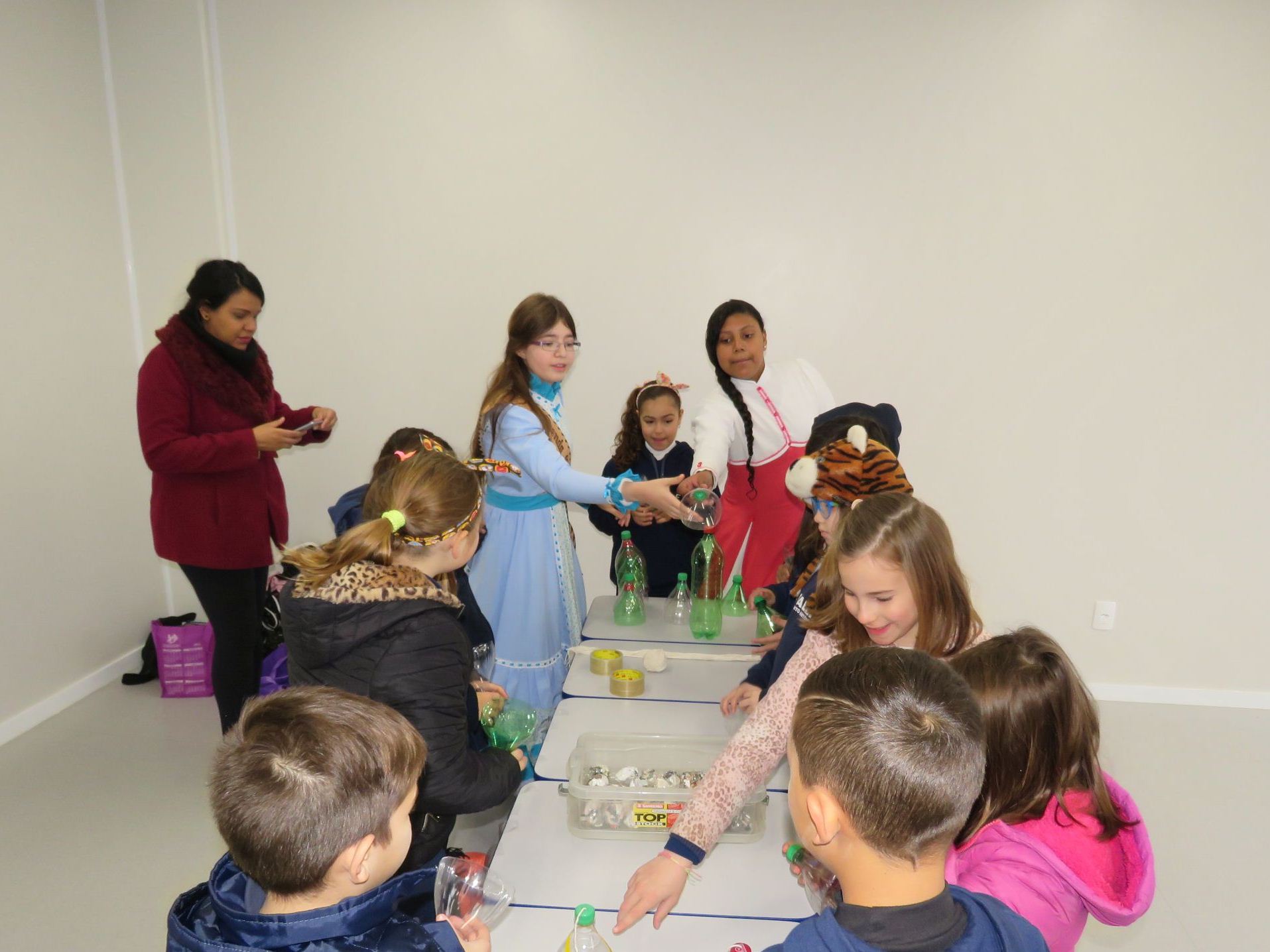 Já as prendas Karla Roman e Tainará Bacellar falaram sobre o bilboquê, um brinquedo que tem objetivo de acertar a bolinha no pino apenas balançando a mão. Em seguida, todas as turmas realizaram a fabricação de um bilboquê com materiais reciclados. Cada estudante levou o seu brinquedo pra casa para se divertir com a família.