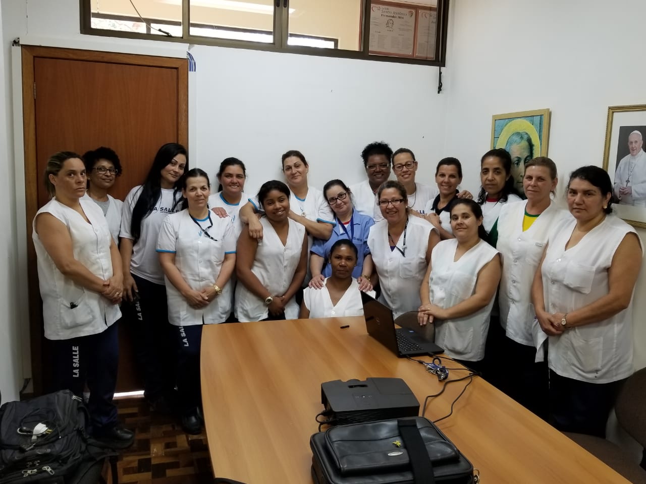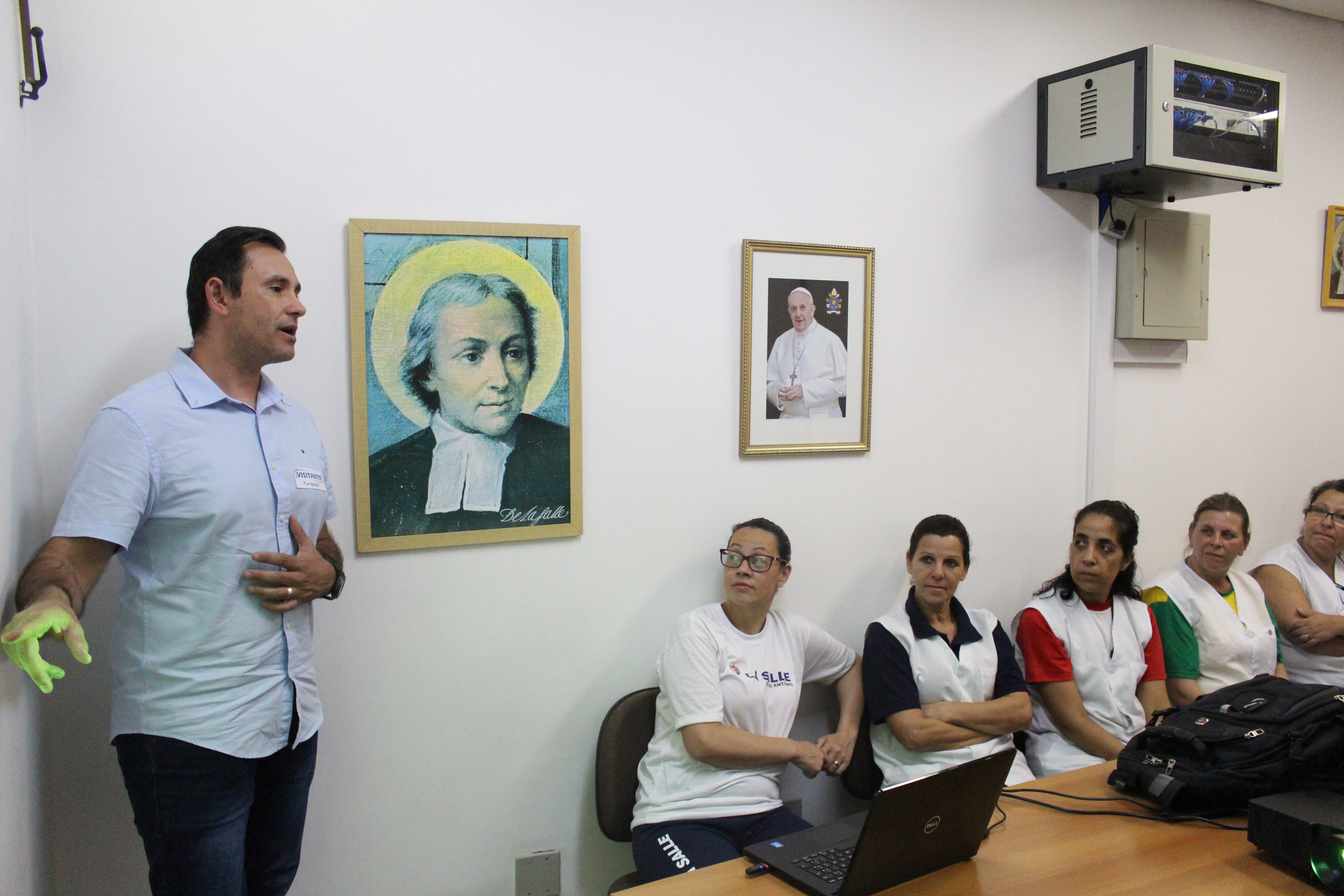 Na terça-feira (16/10), a Equipe de Colaboradores da higienização e limpeza do Colégio La Salle Santo Antônio participou de um treinamento de capacitação em parceria com a empresa de produtos de limpeza e higiene, Olimpo.