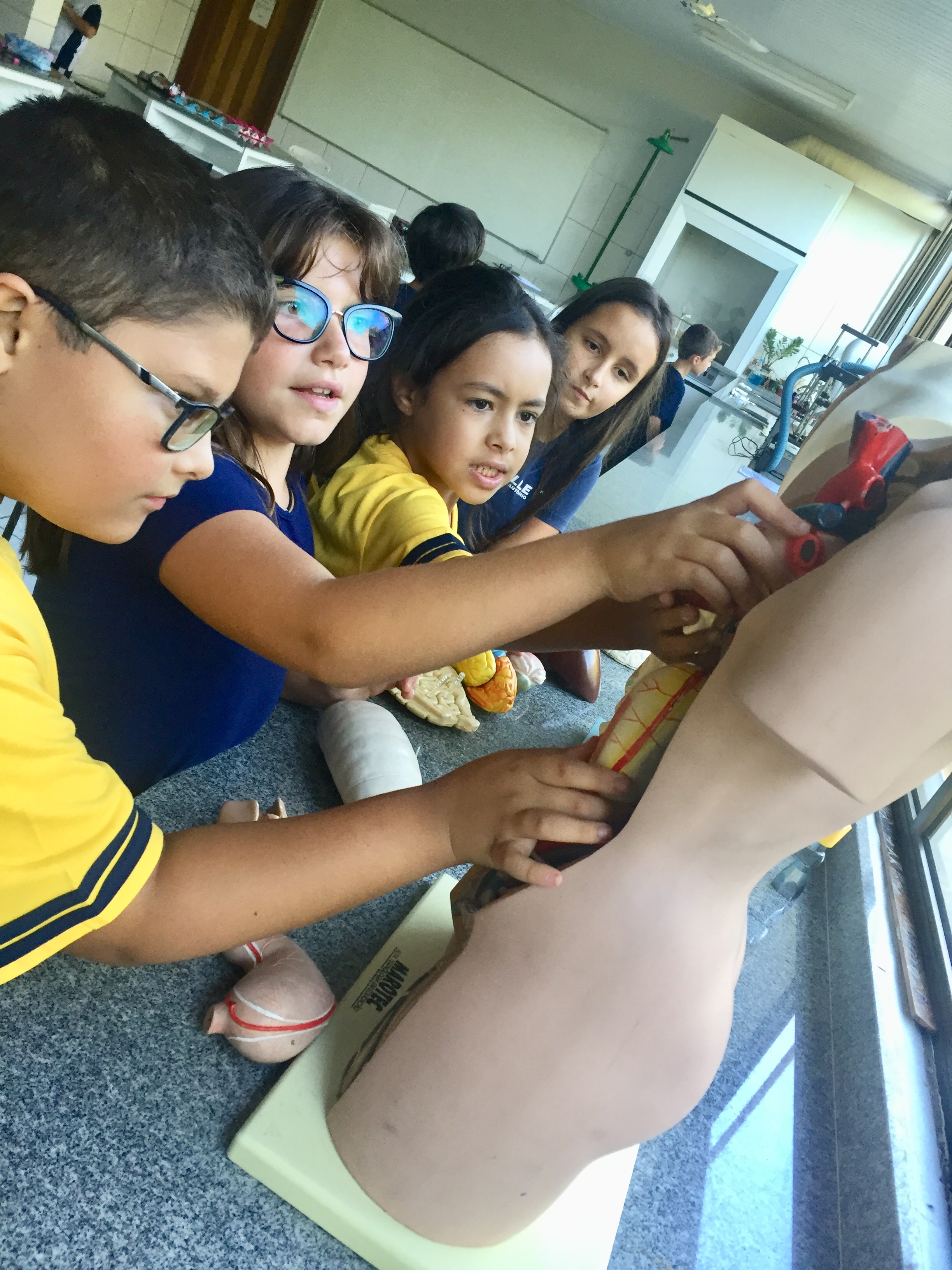 Durante a visita, os estudantes puderam descobrir mais sobre o espaço e objetos como os esqueletos do corpo humano, os materiais de química, física, biologia, além de manusearem os copos de Becker, os microscópios, e outros utensílios existentes no local.
