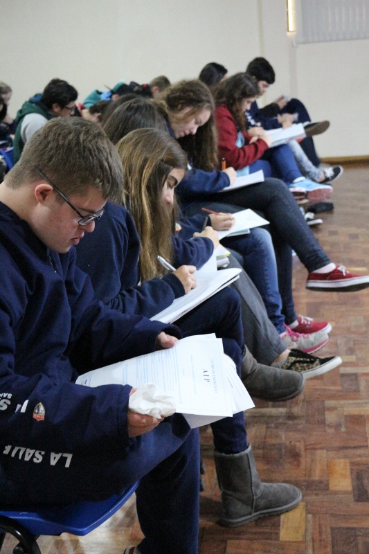 Na última semana aconteceu aqui no LSSA o Teste Vocacional para os estudantes da 3ª série do Ensino Médio. A atividade foi realizada no Salão de Atos e teve parceria com a Unilasalle (Centro Universitário La Salle). Quem acompanhou os estudantes durante a atividade foi a Psicóloga, Fabiana Oravec Rosa.